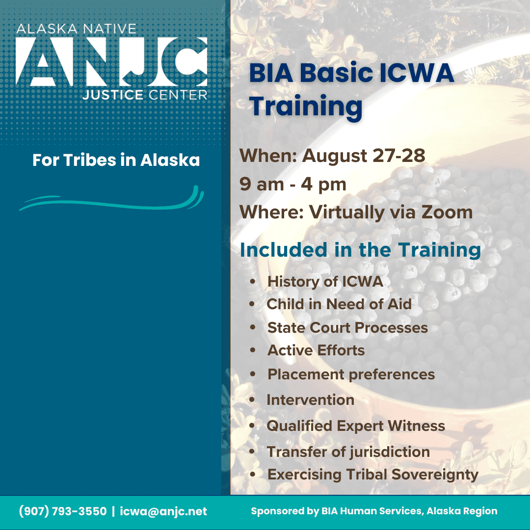 ANJC is offering a comprehensive introductory training on the Indian Child Welfare Act (ICWA).