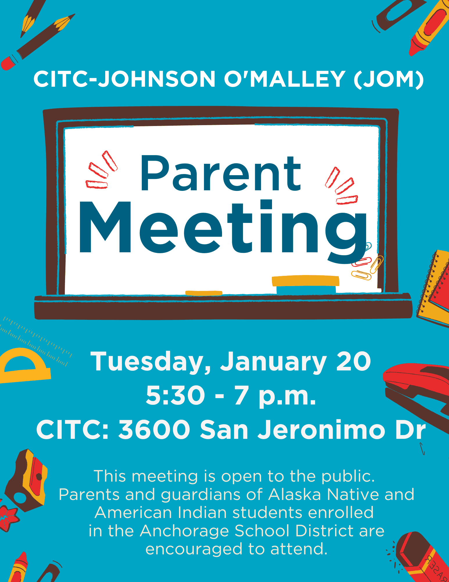 Please join us on Tuesday, January 20 for the CITC-Johnson O’Malley (JOM) Parent Meeting. This meeting will be held in person at CITC, 3600 San Jeronimo Drive (across from Costco on Debarr). This meeting is open to the public and all parents and guardians of...