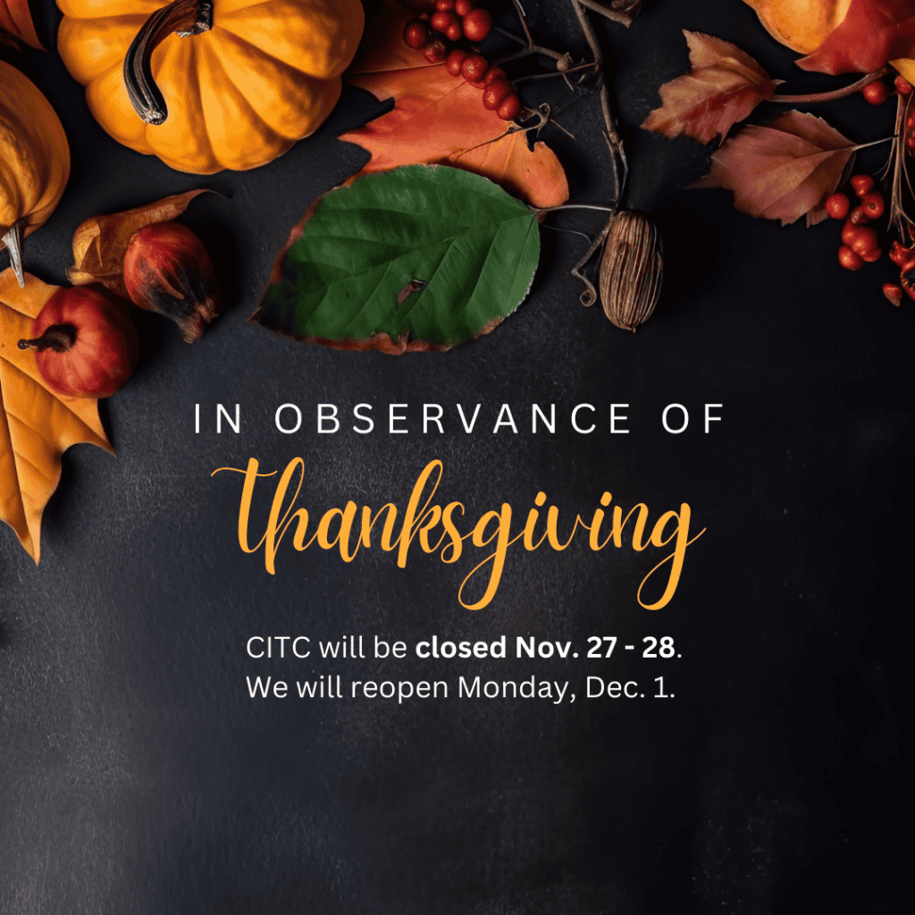 CITC’s business offices and services at Nat’uh building and Denełchin Lab will be closed Monday, October 13, in observance of Indigenous Peoples Day and will reopen Tuesday, October 14. Residential services at Ernie Turner Center, Chanlyut, and peer services are still available.