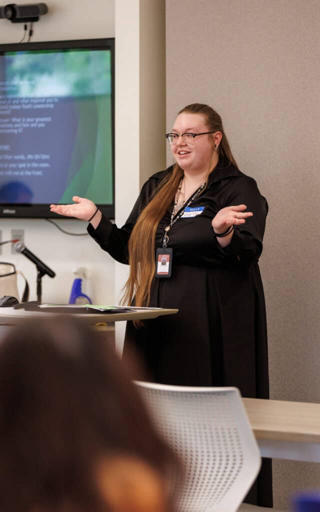 The day featured several dynamic sessions designed to strengthen intergenerational collaboration and highlights included a conversation about self-determination led by artist, student, and CITC YAC member Lisa (Kamahamak) Lynch and Get Out the Native Vote Director of Strategic Initiatives Michelle Sparck; a “coffee talk” about generative leadership led by CIRI President Tabetha Toloff and CIRI Shareholder and Descent Programs Coordinator Brooke Schurosky (another member of CITC’s YAC); and a session led by Kristin, who spoke about the importance of work readiness, public speaking, and building networks.
